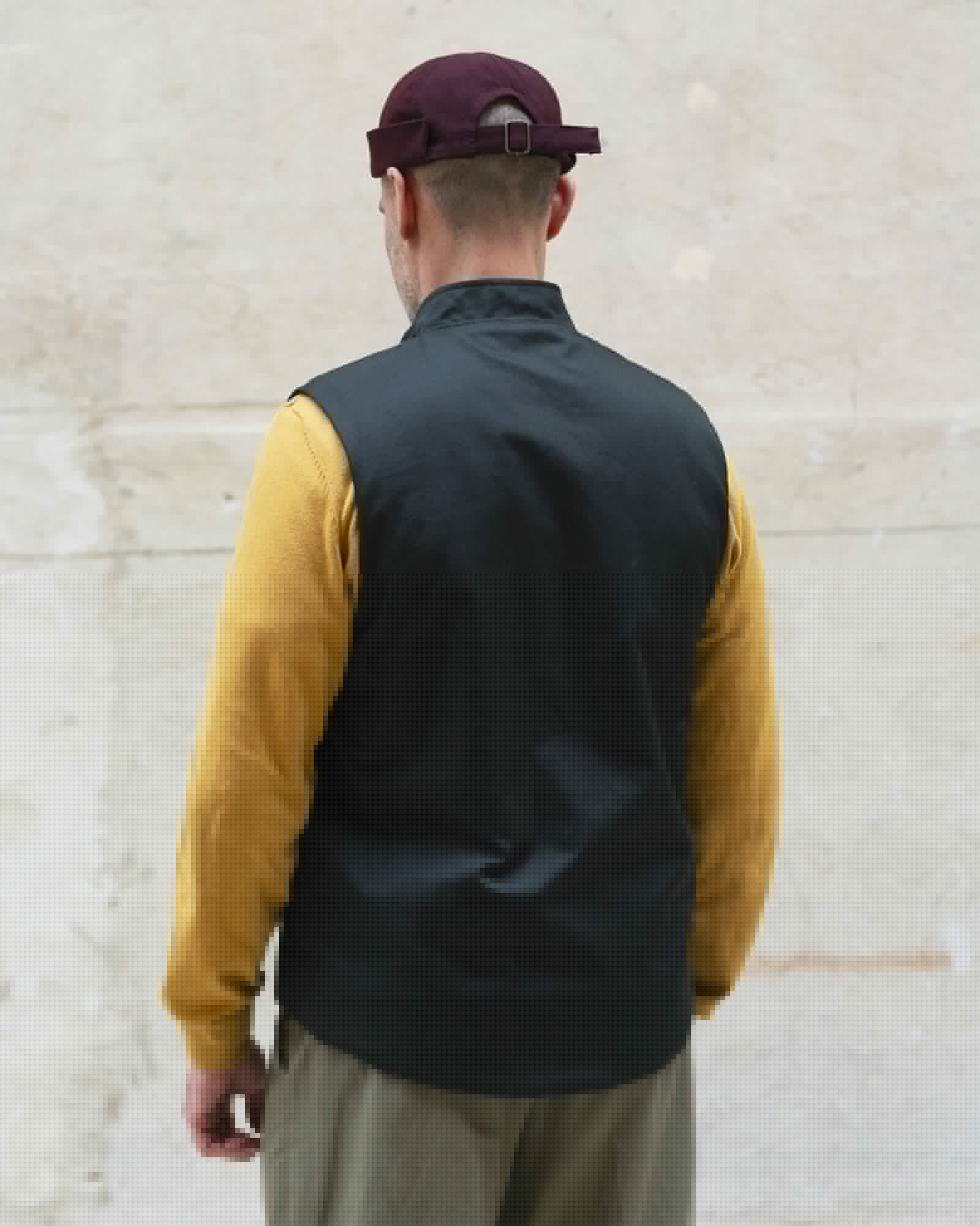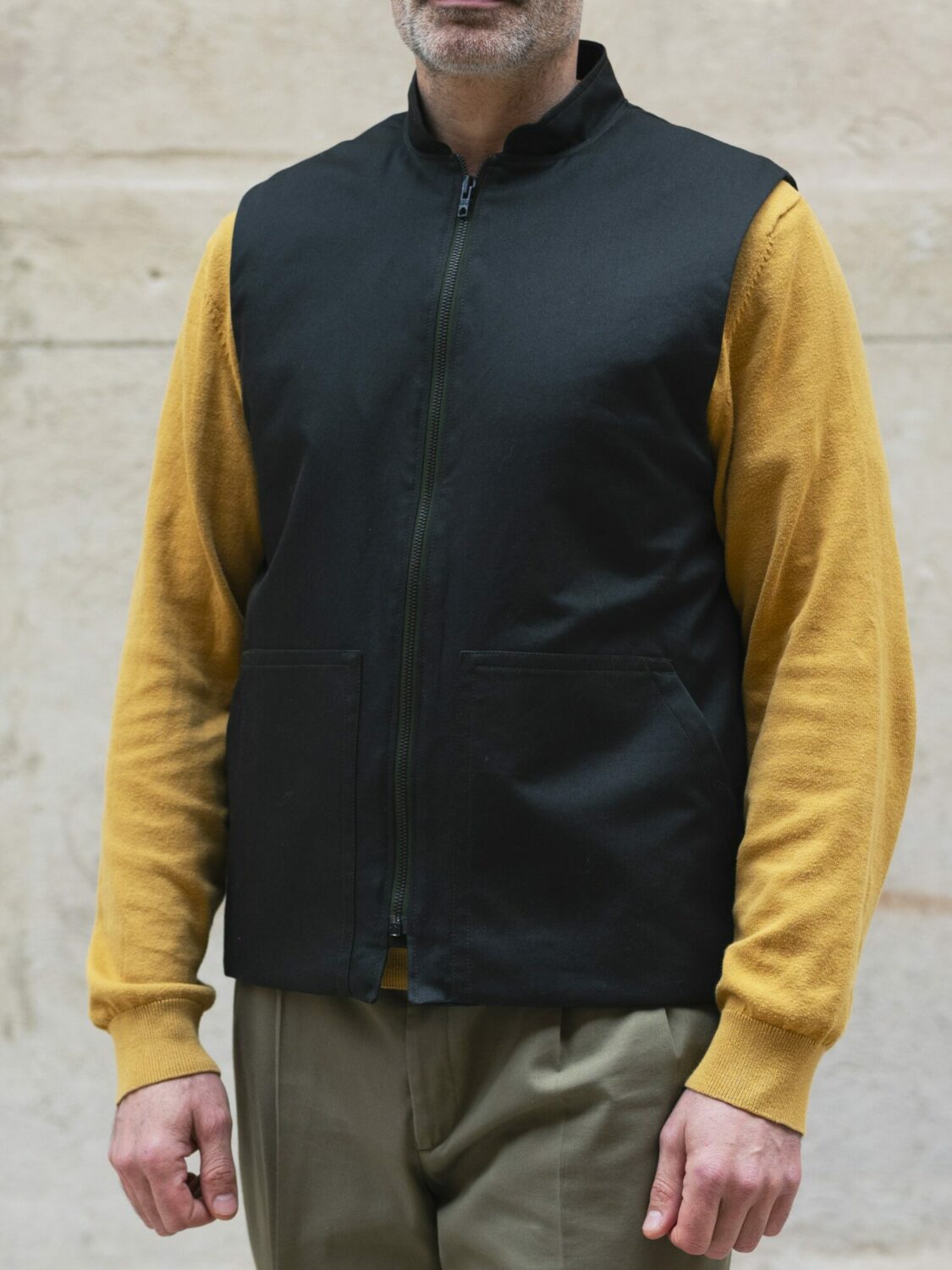 Ce gilet sergé coton vert sapin avec sa doublure en laine beige, d’Atelier Lucille Maillet est une fabrication artisanale drômoise, pensés pour durer et être réparés si besoin. Il est proposé en 2 tailles, S/M et L/XL et est prévu pour être porté par-dessus ses propres vêtements pour apporter de la chaleur et du confort sans contraindre les mouvements.