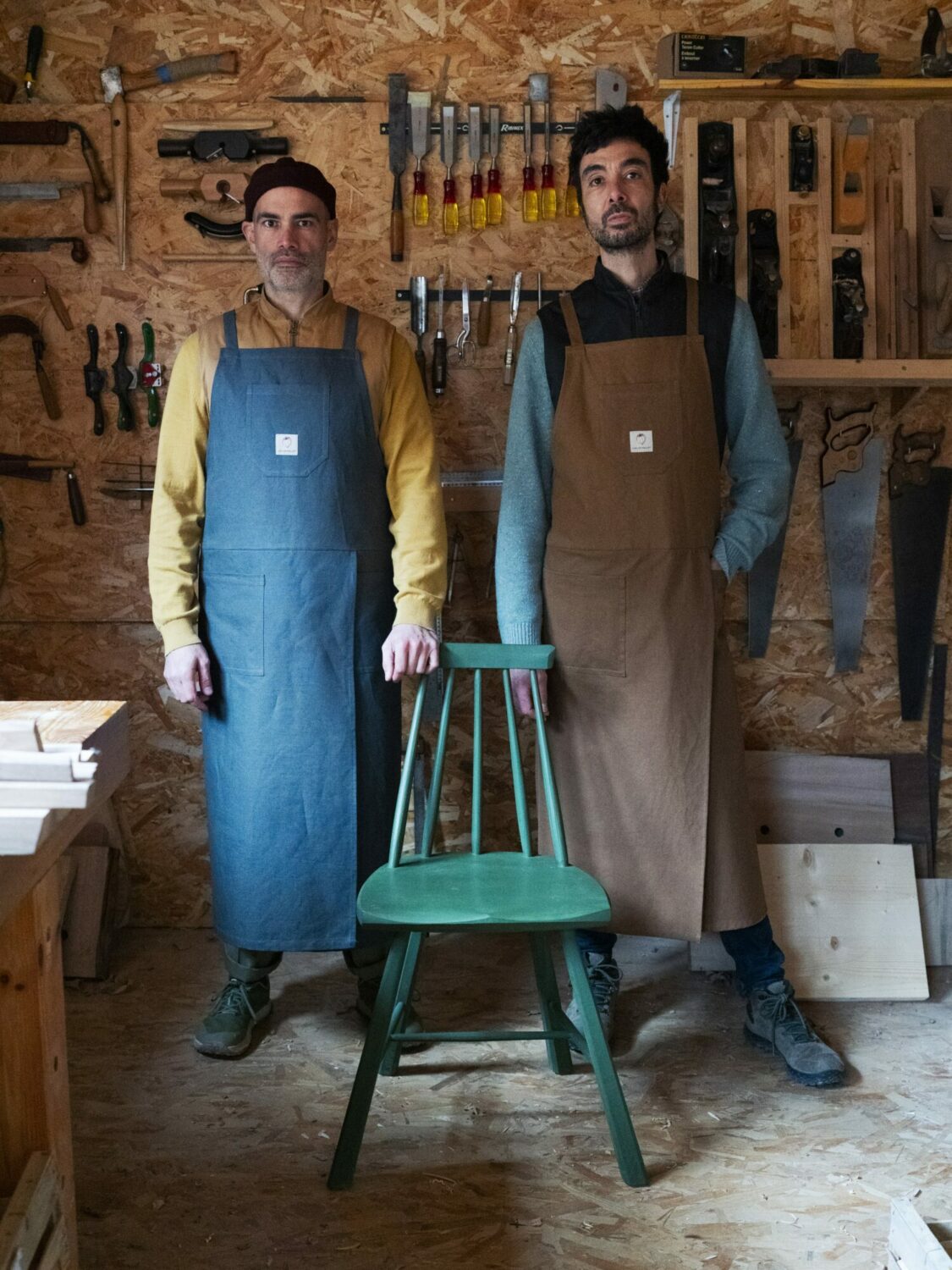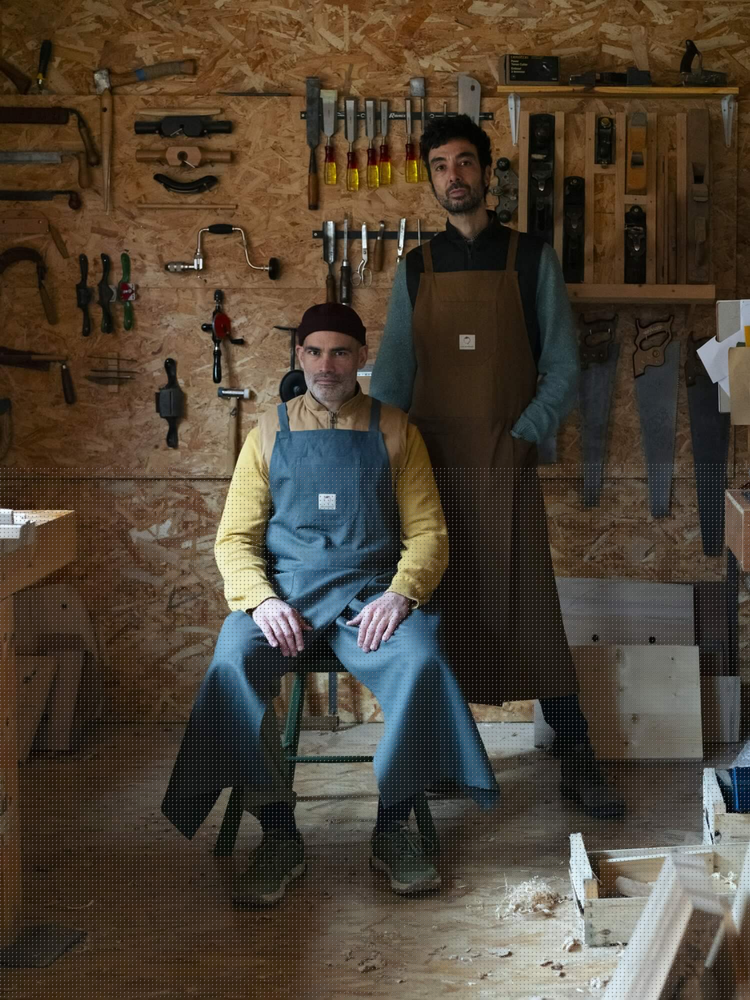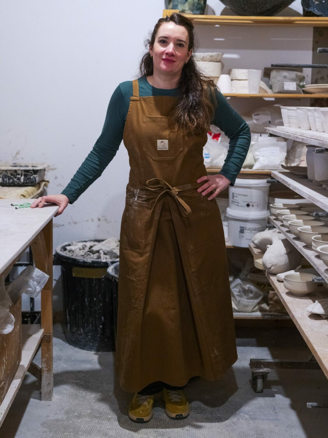 Le tablier existe en deux versions et pensé au début, pour le travail au tour des potiers.